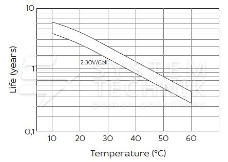 - Срок хранения без подзаряда: 6 мес. при 25°C;