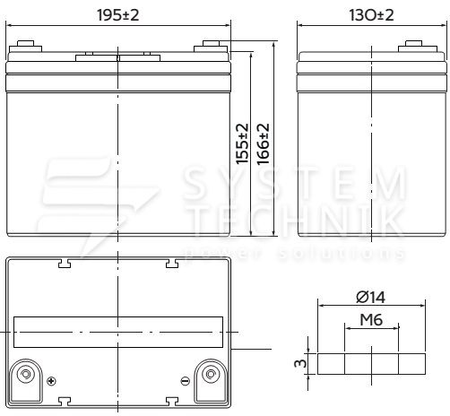 - Срок хранения без подзаряда: 6 мес. при 25°C;