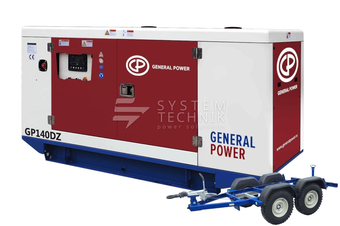 - Дизельный генератор General Power GPS140DZ в кожухе на прицепе