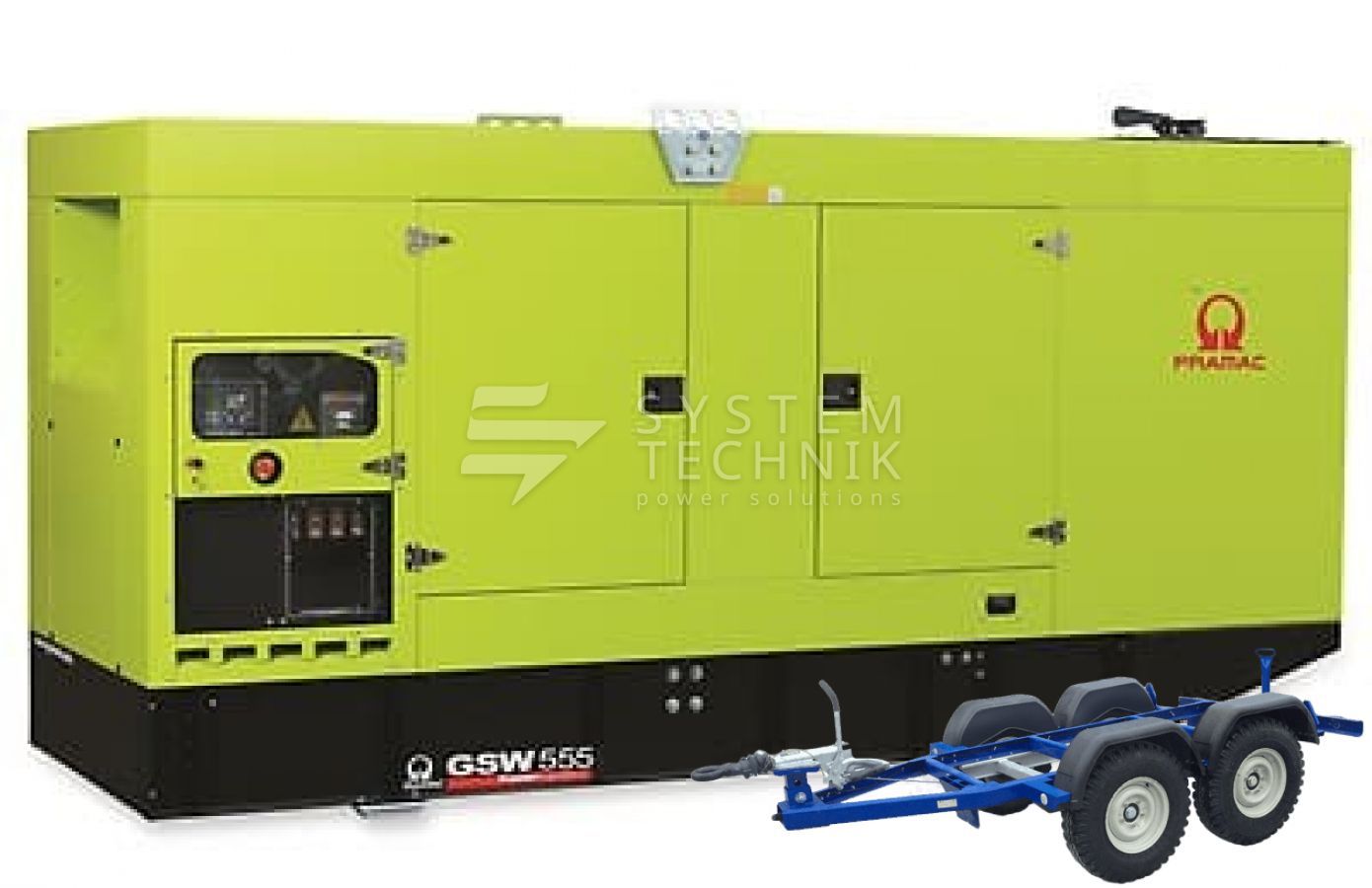 - Дизельный генератор Pramac GSW 555 V 400V В кожухе на прицепе