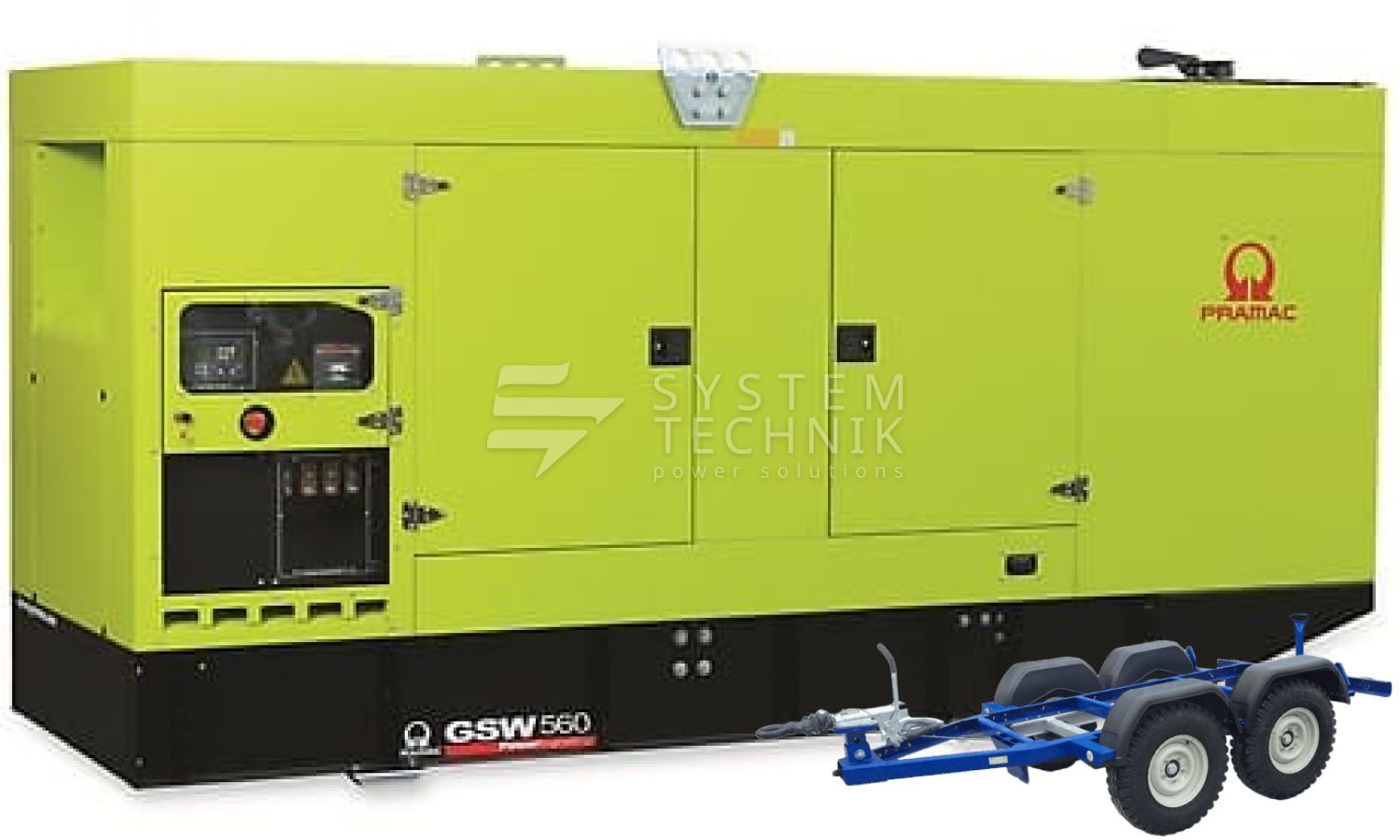 - Дизельный генератор Pramac GSW 560 V 440V В кожухе на прицепе