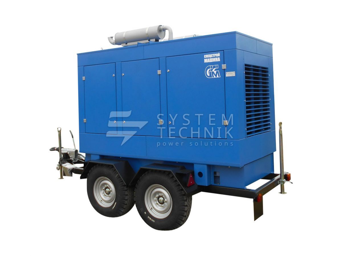 - ССМ ЭД-120-Т400-1РКМ2 в шумозащитном кожухе на шасси на прицепе