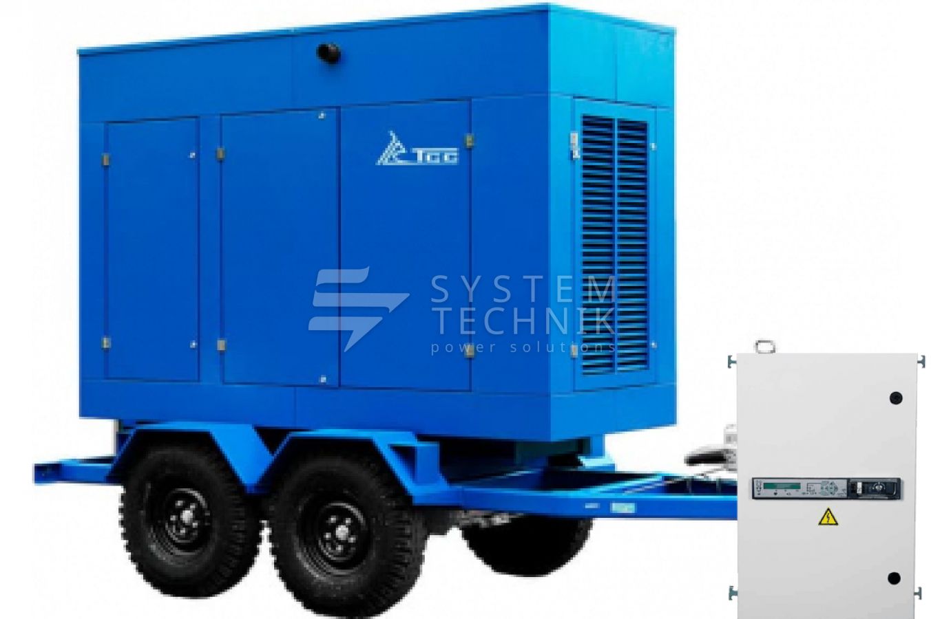 - ТСС ЭД-100-Т400-2РПМ20 в погодозащитном кожухе на прицепе с АВР